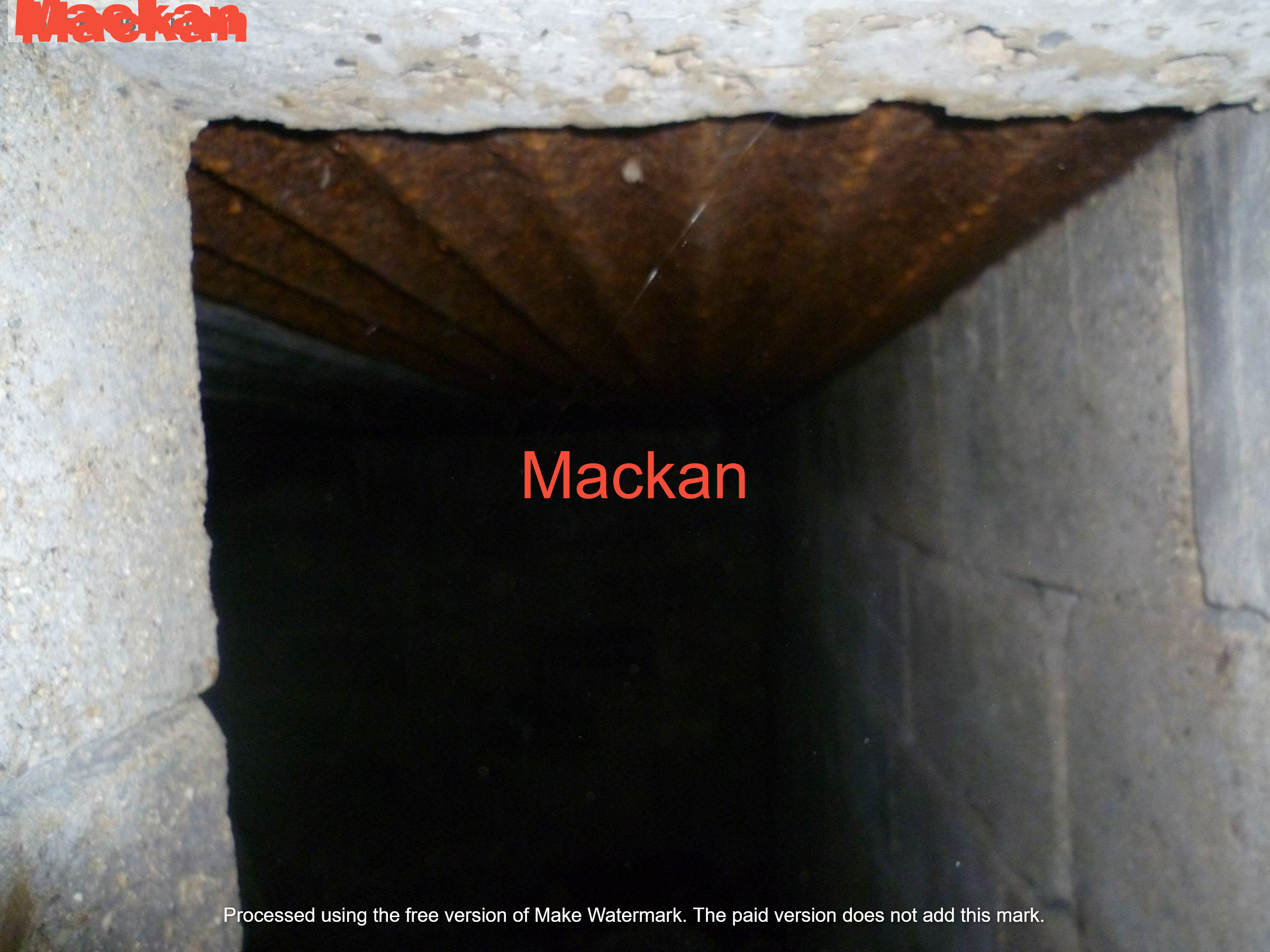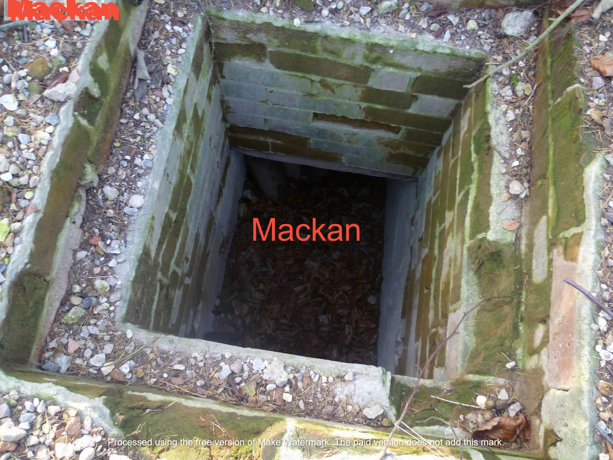 Ingången var full av löv så jag tog bara kort genom att sticka in kameran. Vattentanken där till höger på nedersta fotot gissar jag.