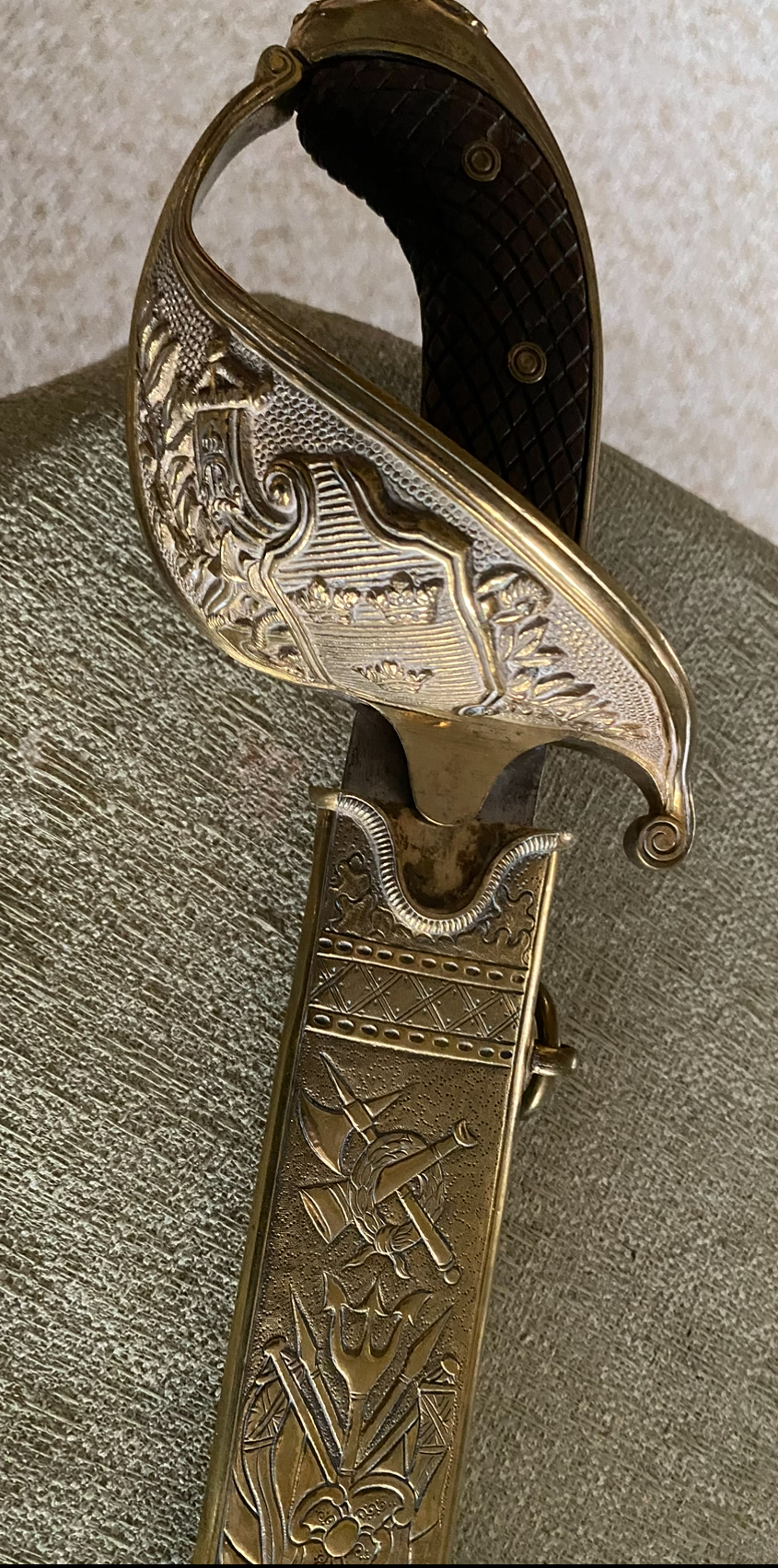 Hej har denna sabel för officer vid flottan som bör vara från första halvan av 1800-talet någon modellbeteckning eller fick man skaffa sin egen sabel?
