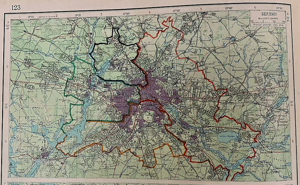 En liten reflektion - Försökte man officiellt låtsas som att Berlin bestod av fyra ockupationszoner och inte två? Min minnesbild är att Västberlins gränser varit solida på alla kartor jag minns, men fram till DDR och BRD blivit erkända kanske man ritade ockupationsgränserna mellan de västliga staterna med samma styrka som mot Sovjet-zonen?