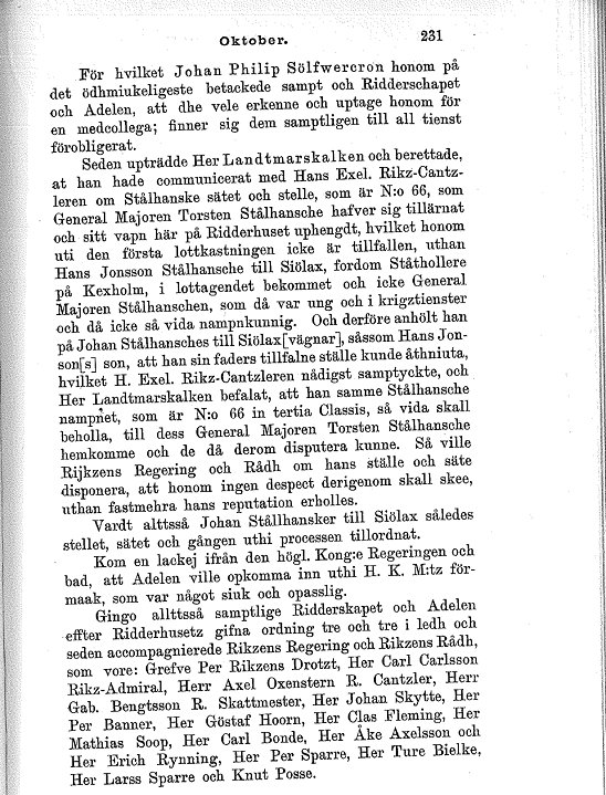 Och Ridderskapets och adelns protokoll 10/10 1643: