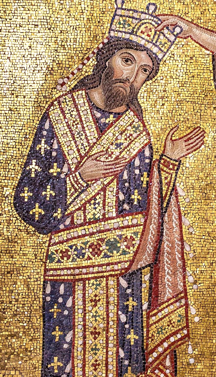 Den andre kunde jag räkna ut är förmodligen en normandisk härskare. Roger II blev kung 1130, så det här bör ha hänt 1109 när Roger II var 14, och den förste bör vara en korstågsfarare, men vem kan det ha varit; Sigurd Jorsalafare?