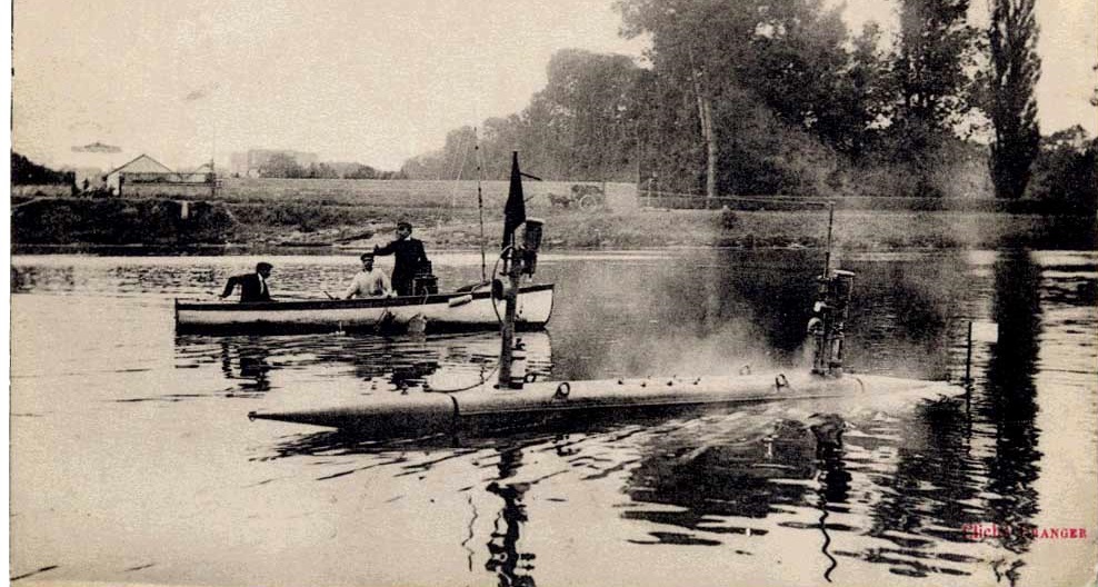 Precis vad det var! Drevs med oljemotor i undre stridsladdade skrovet via skorsten/luftintag i den - övre flottören