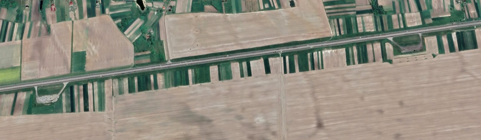 Numera ukrainsk reservvägbas strax väster om Krupets. Den sovjetiska utformningen var som synes lite mer påkostad än den finska (eller svenska för den delen) med stora plattor med taxivägar en bit ifrån rullbanan. Detta torde ha varit en standardlösning inom hela WP, jämför med den östtyska utformningen ovan.