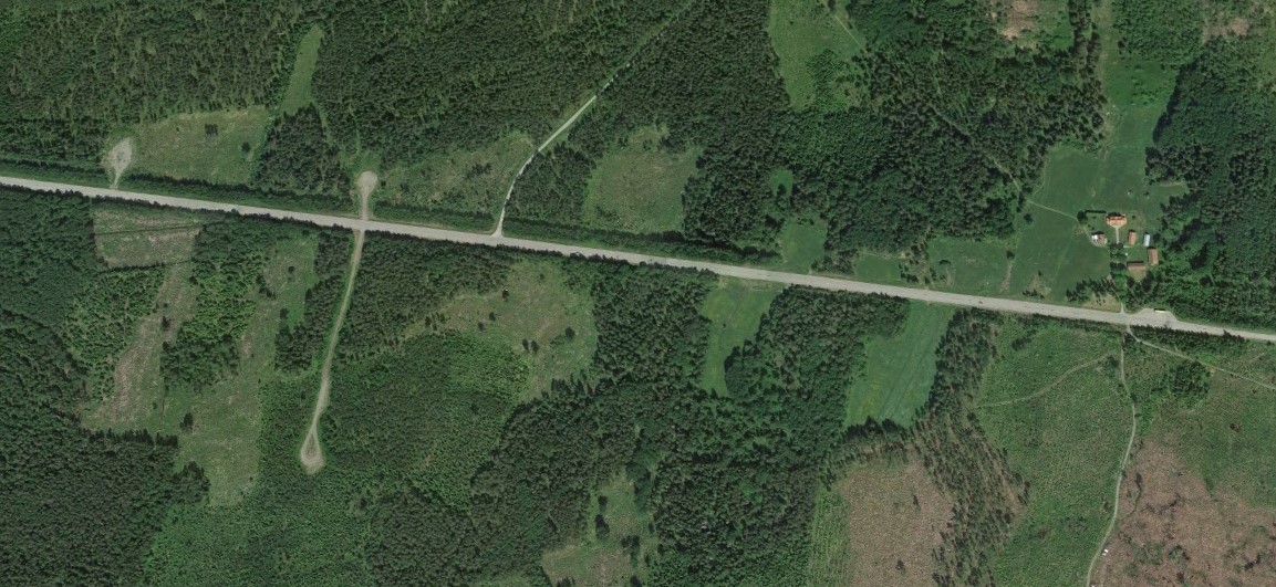 Finsk reservvägbas i direkt anslutning till Rovaniemi flygbas. Observera att den har ett färdigt stråk (det öppna området vid sidan av rullbanan), jämför med hur nära skogen går vägen i södra änden efter rullbanan. I norr syns en större platta och i söder en kringkörningsväg.