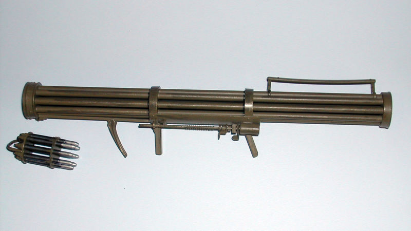 Vapnet är tyskt från 1944-45. En sexpipig ''raketbössa'' med 20 mm's kaliber och - avsedd för ''närförsvar mot lågflygande attackplan''