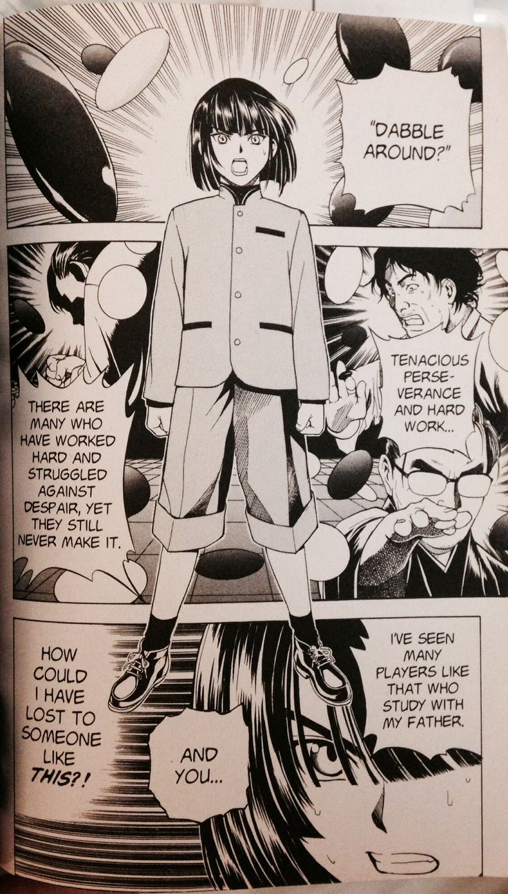 Här är Akira förbannad för att Hikaru verkar ta så lätt på spelandet. Vad han inte vet är att Hikaru har hjälp av en nästan tusen år gammal goängel som heter Fujiwarano Sai.