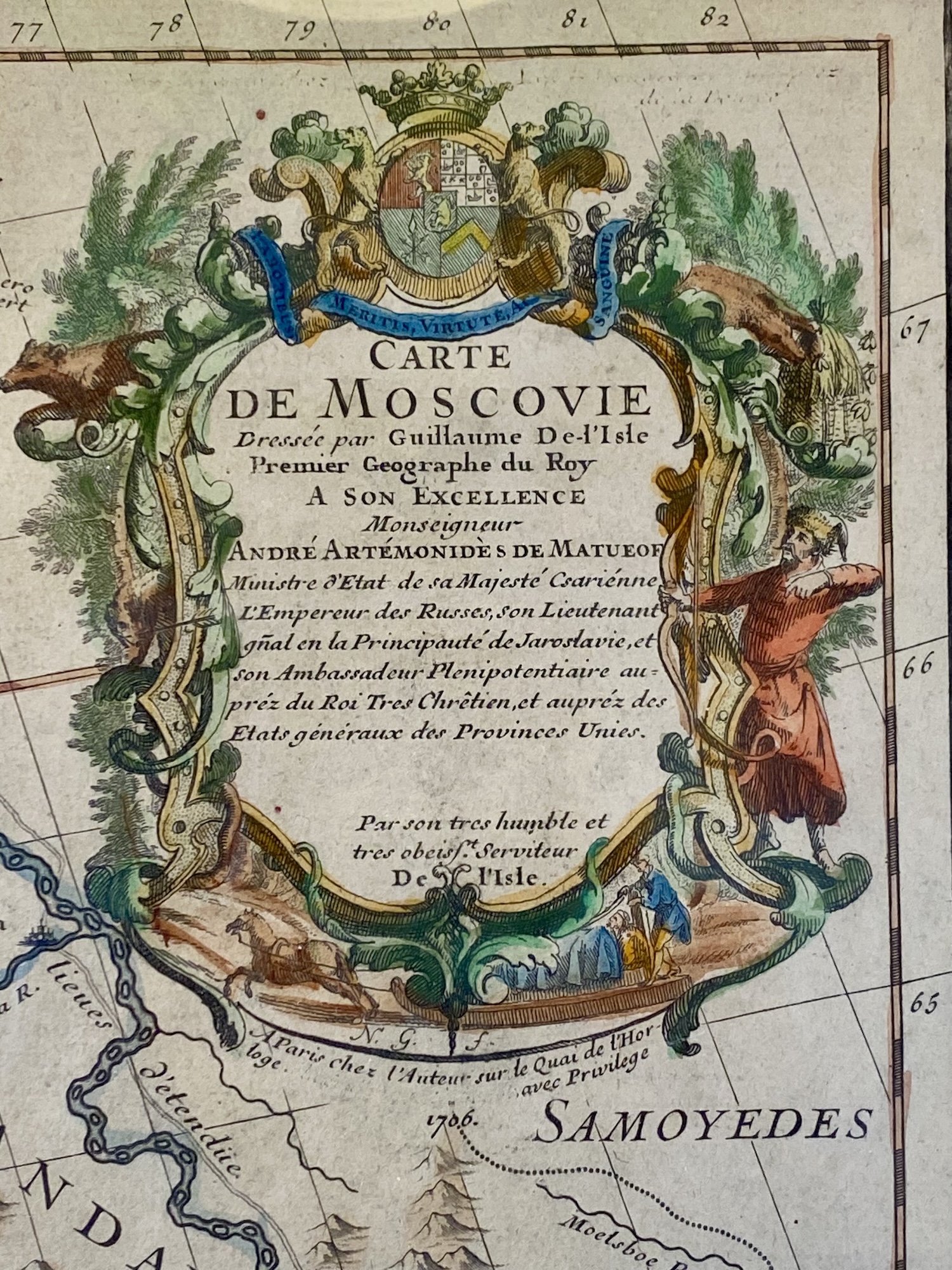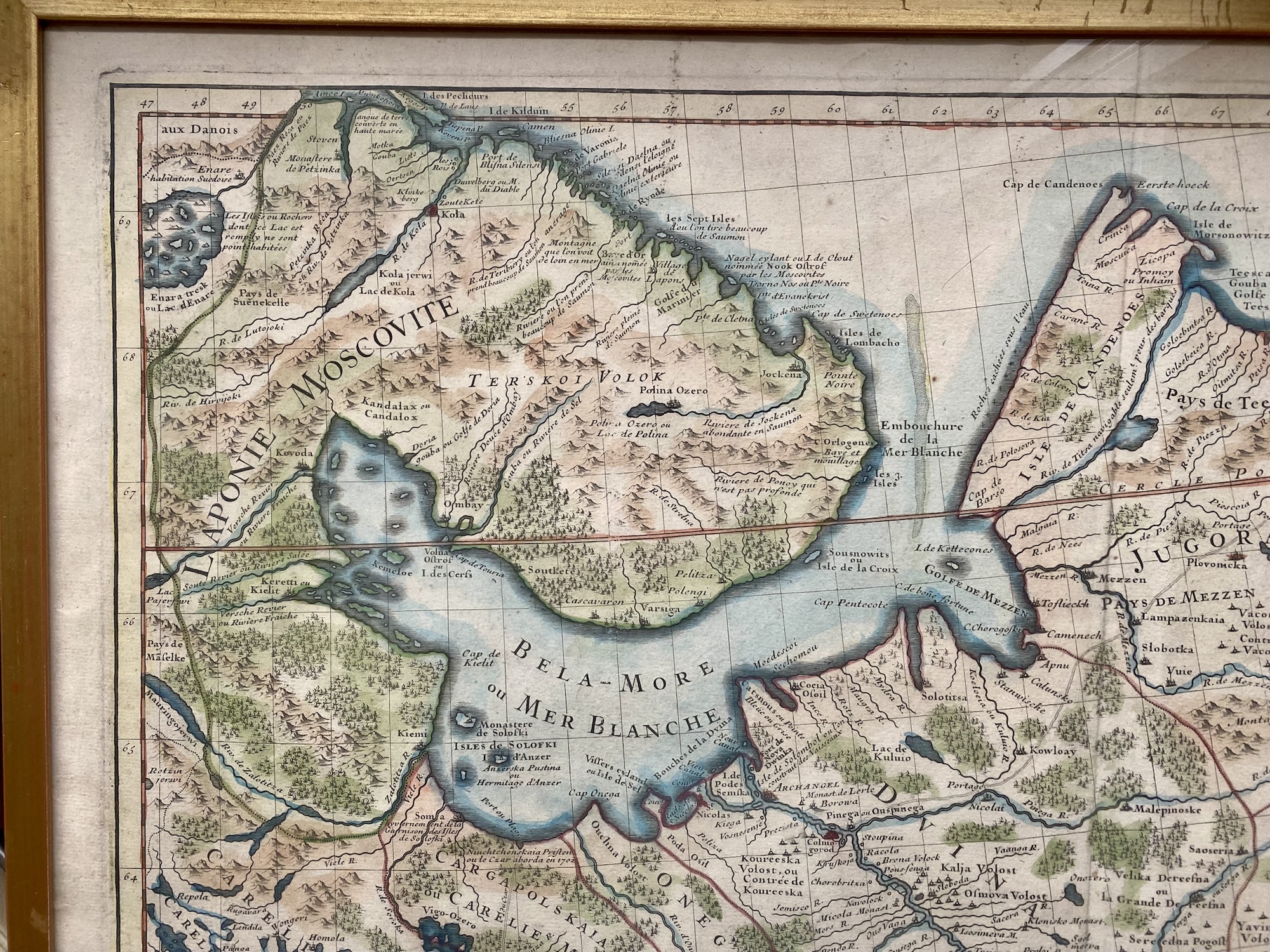 Ja, varför jag satt in dem i här i skalman - jo, kolla längst uppe till vänster, området som nu var ryskt, "Laponie Moscovite" - bra namn - och längst upp, "au Danois"...! 1706! Danskt! Det...kan säkert någon här förklara!