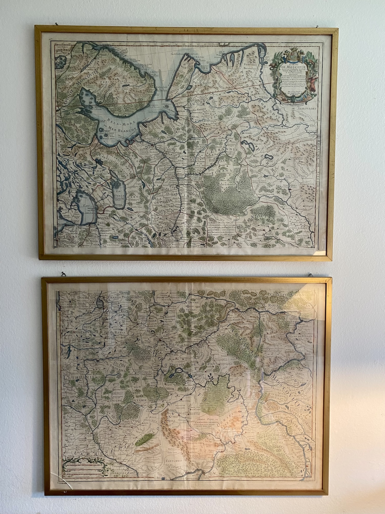 Efter en timme var det adieu, och jag traskade iväg med ett femtiotal inhandlade härliga vykort från tsartiden...och ett par kartonrullar med kartor. Bl.a. de här, som nu hänger här på vägen...
