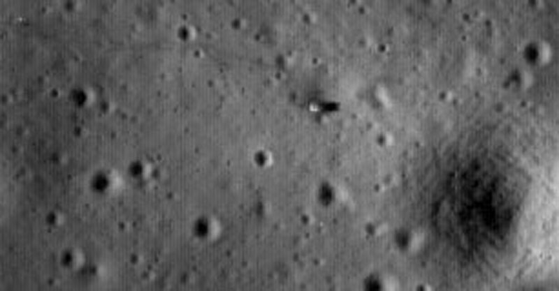 - Apollo 14:s landningsmodul och den närliggande terrängen omkring. Inga extraodrinära dalsänkor finns med i bild.