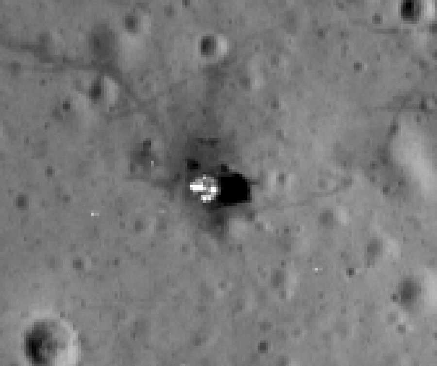 För att ha något att jämföra med bifogar jag också in LROC-bilden på landningsmodulen, så som den såg ut den dagen.