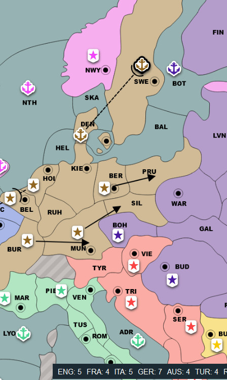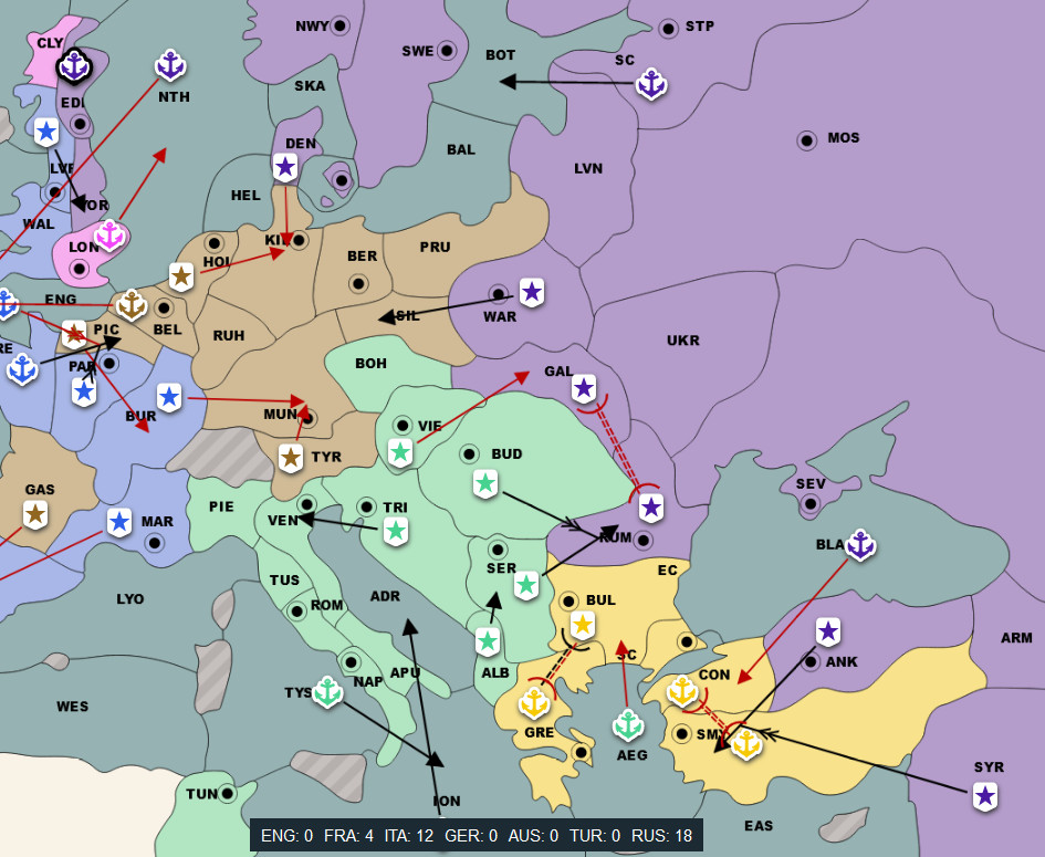 AUS: I've gotten multiple messages from both Turkey and Russia so far saying that Italy is planning on stabbing me. You're absolutely right, and I will definitely be covering myself at Trieste, but it would help me if I could confirm with someone that they are at the very least talking to him.