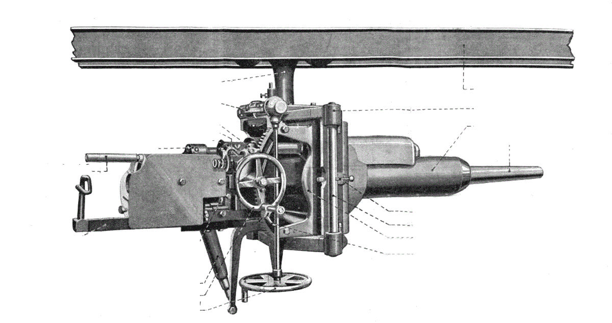 Jag tror att den hänger i grej som tillåter att man tar in kanonen under tak. I vanliga fall ser den ut såhär, framifrån.