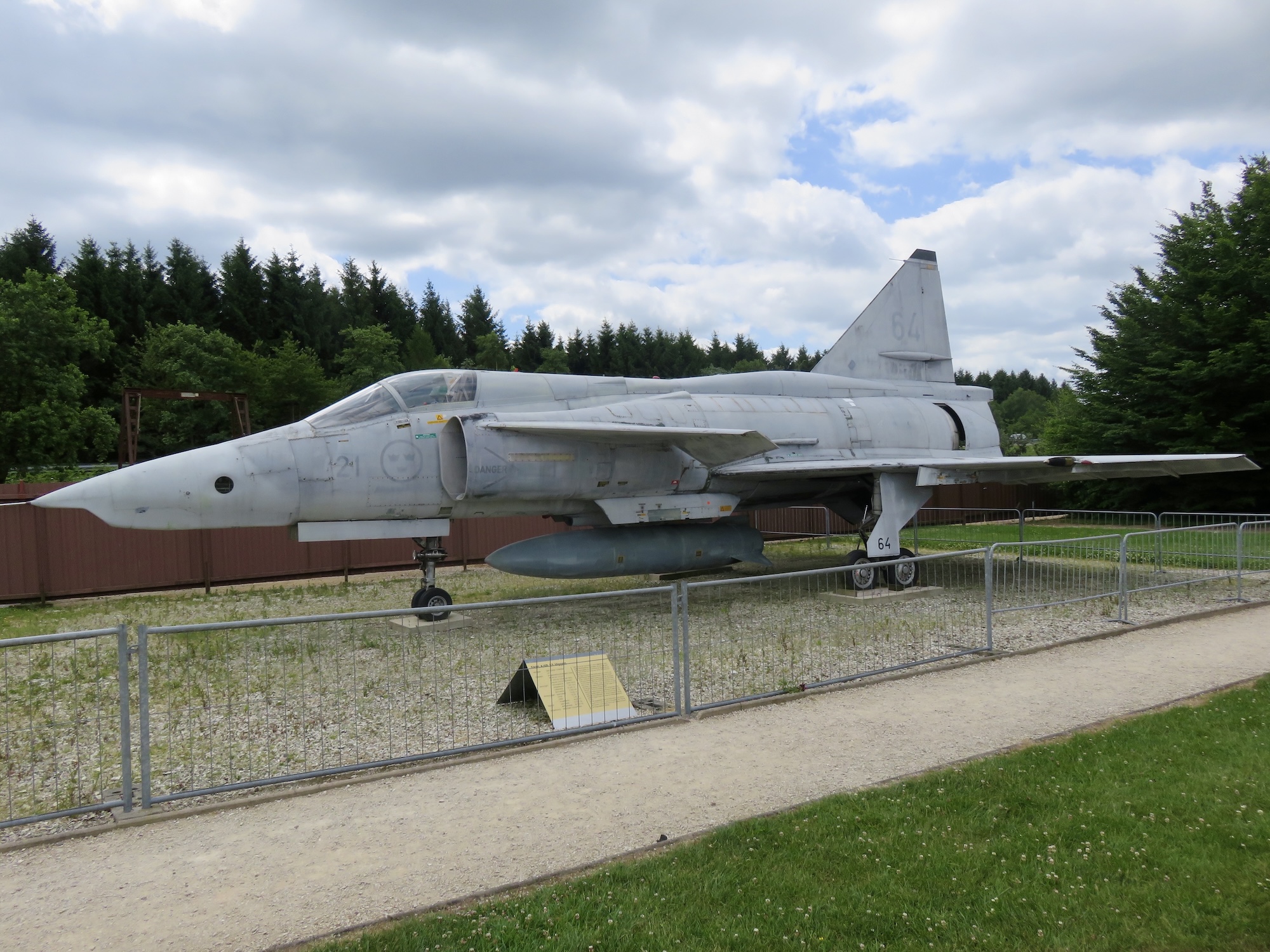 Tre utställda Viggen har jag sett utanför Sverige - en i österrikiska flygmuseet i Graz, flögs till alplandet från Sverige den 11 april 2005 av Överstelöjtnant Claes Brenander. Gamla Bettan II. Står momentan lite trångt, men inomhus, i en hangarliknande byggnad vid det civila flygfältet.