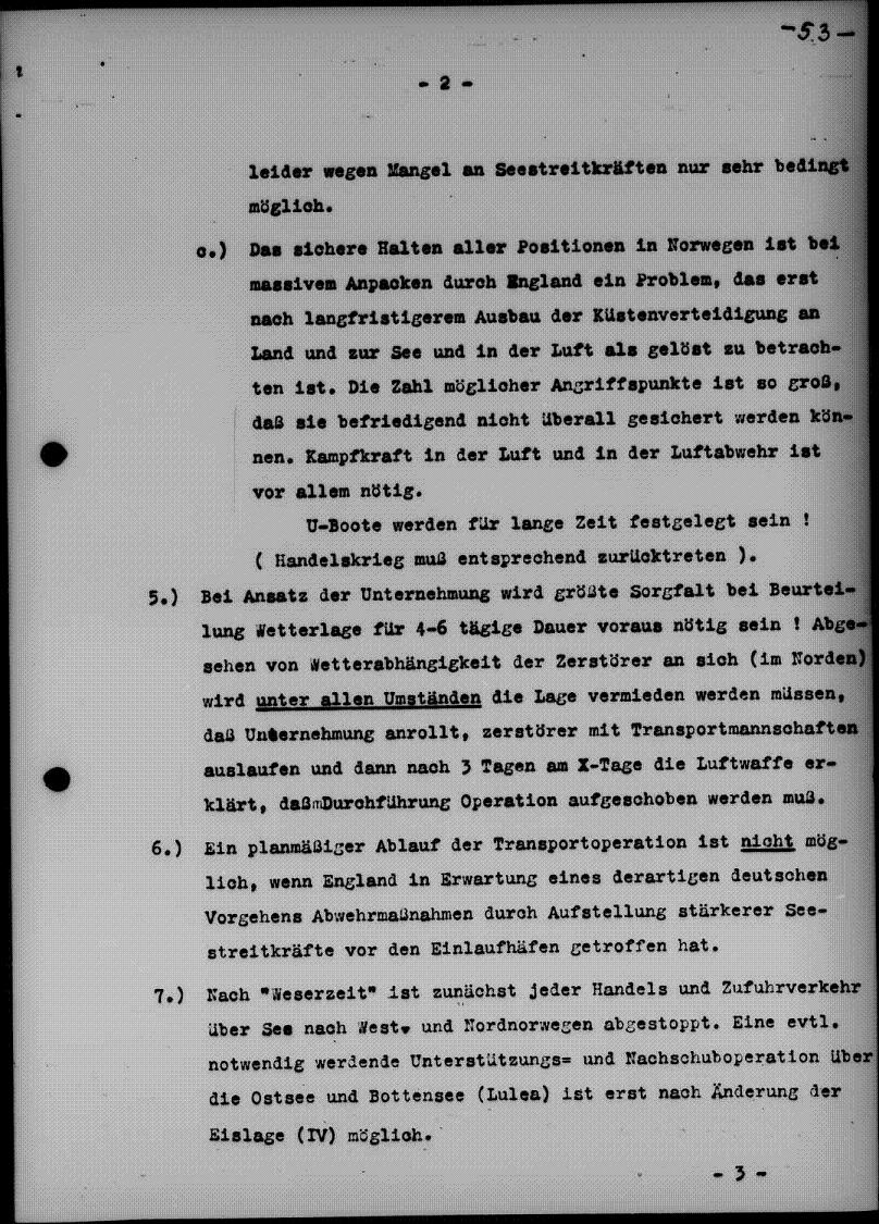 "Detta fullständiga stillaliggandet av sjökrigsföringen kan bara accepteras om Weserübung garanteras att genomföras omgående."