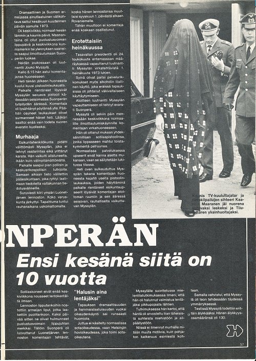 Hans baneman dömdes tills livstid i fängelse men nådades efter 9 år av president Koivisto.