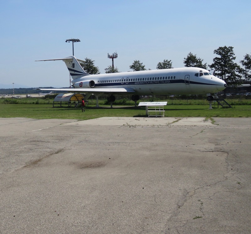 Kabinplatserna har huggits ut ur DC-9:an och hittas nu i det italienska flygmuseet Volandia vid Malapensa, Milanos flygplats. Och planet självt står utanför...
