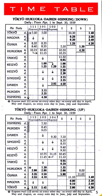 Tidtabell för Japans Kejserliga Flygbolag, eller mer rakt översatt, Storjapans Flygbolag.