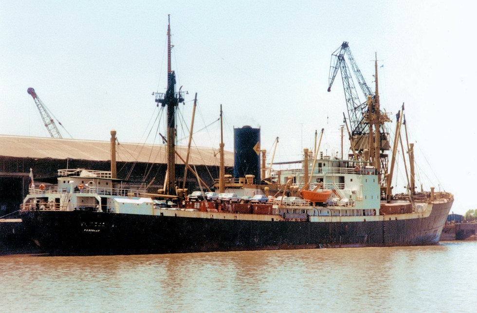 - kanske i Mecico prt Colombia? Hursomhelst gick hon på grund väldigt illa en gång i mitten på 80-talet och hon sjönk så småningom - även några besättningsmän omkom också.