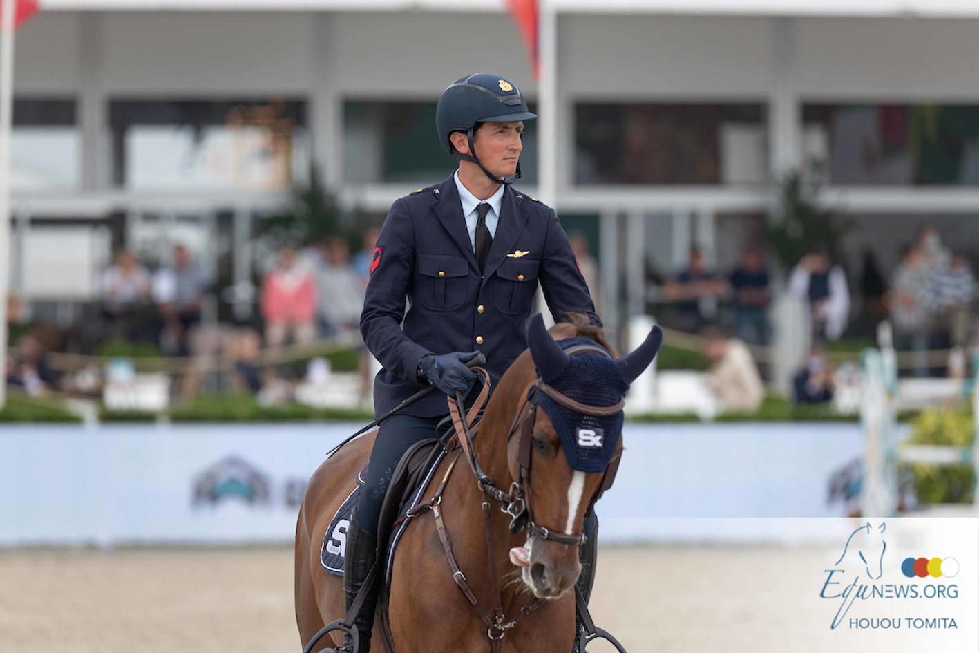 Den ungerske ryttaren Tamás Mráz ser ut att ha kommit direkt från fronten. Är det en uniform?