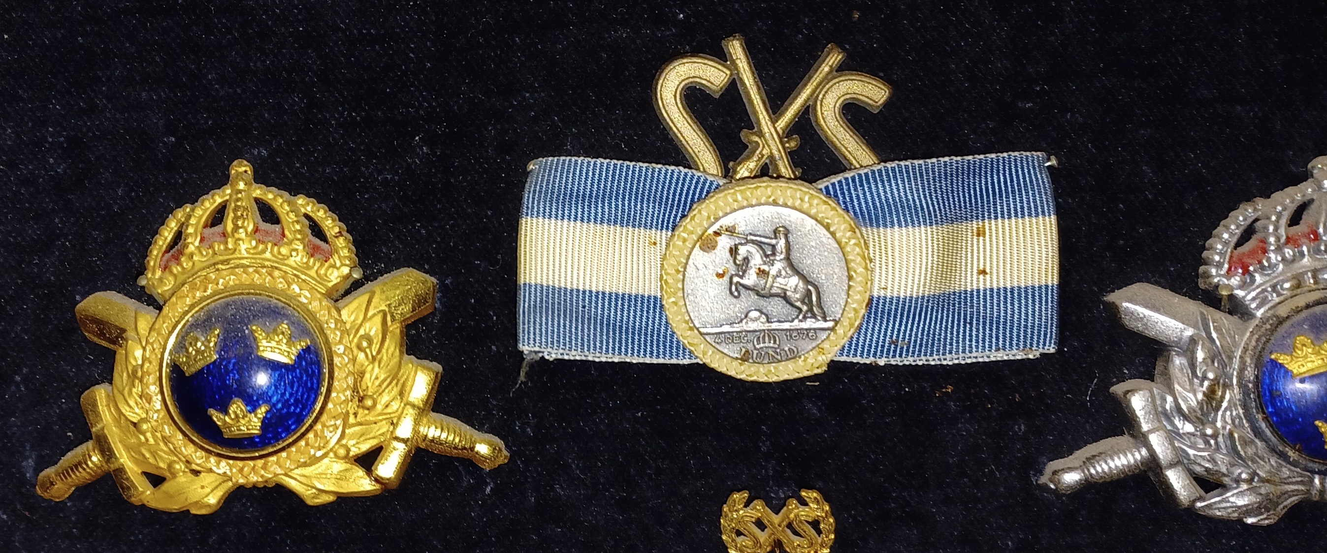 Därav halmkransen, syns här på mössmärket här och på det speciella blåvita märket, mellan InfSS märkena. Var obligatoriskt att bära på högtiden i alla fall på I 3. Ett år tyckte min flickvän att färgerna inte passade till balklänningen sin så jag målade märket på hennes nagel, på ringfingret. När någon kollega klagade på att hon inte bar märket fick han fingret, han tystnade.