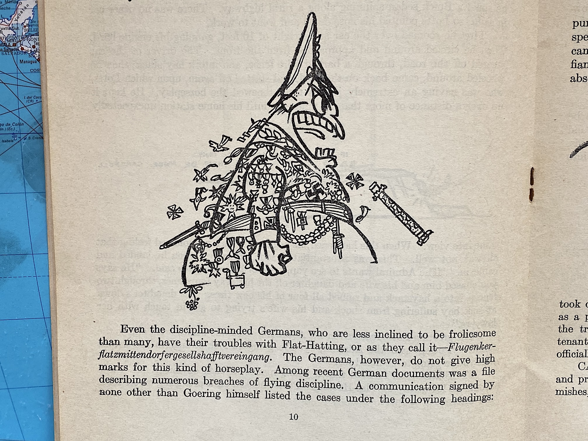 ...och texten: "Even the discipline-minded Germans, who are less inclined to be frolicsome than many, have their troubles with Flat-Hatting, as they call it - flatzmittendorfergesellschafftvereingang..."!!