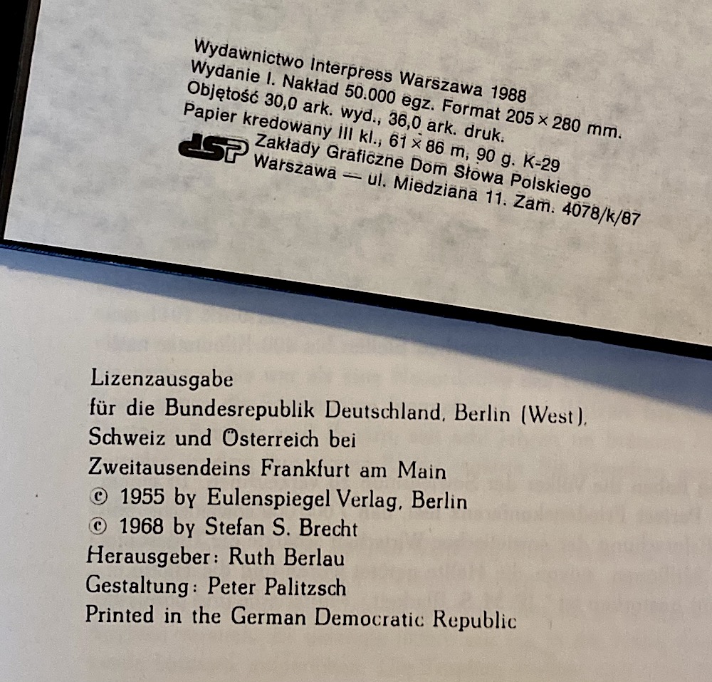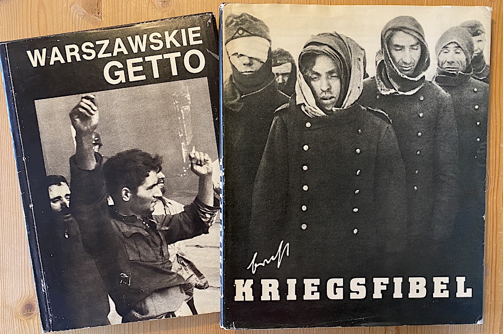 Det andra krigsbildverket kom ut i Östtyskland 1955. Bilder som Bertolt Brecht samlat i exil. Däribland ett par ur svenska tidningar. Boken kom ut ett år innan Brecht dog, och till varje bild hade han diktat fyra brechtska och bitska rader. Intressant tycker jag, boken som jag har från 1968 trycktes i DDR - men kom ut i BRD!