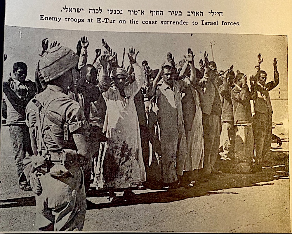 Från höger till vänster. The Operation Sinai Album. Tryckt i Tel Aviv 1956. Med förord av Israels försvarsminister. D. Ben-Gurion. "The photographs in this album are published by permission of the editors of "Bamahenah", the journal of the Israel Defence Army."