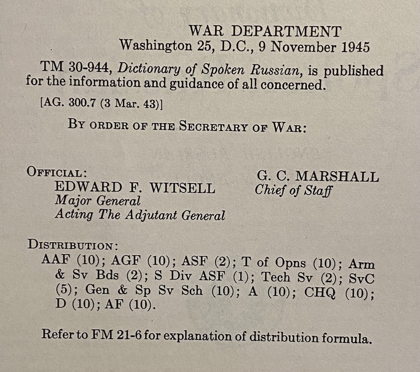 För vilket ändamål undrar man. November 1945 började det kärva till sig ordentligt mellan de allierade. Ev. samarbeten blev nu lagda på is, man härsknade till, det blev kallt...det var nog knappast tal om att att besöka den kommande fienden. Ännu mindre chatta, med ordboken i västfickan!