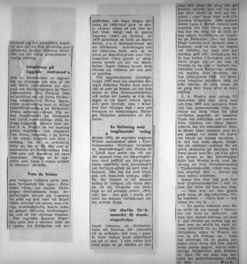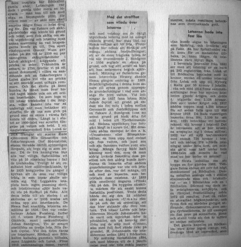 Medryckande läsning! Min far var född i Luleå. Han hade en äldre broder, Gustav, som en tid hade någon befattning vid Rödkallen. Far arbetade som tonåring vid Brandfors järnaffär i Luleå, men gick sedan till Flottan och blev 3:e maskinist.