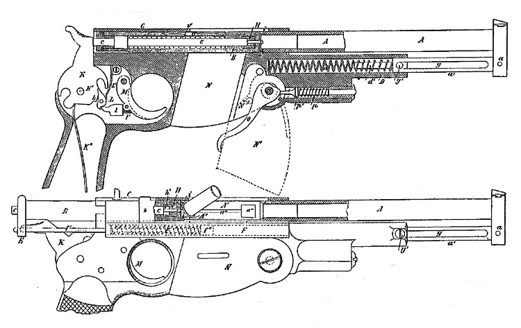 Vem som kom först, är idag svårt att säga. På 1890-talet bokstavligen haglade det – patentansökningar för mer eller mindre obskyra ’’självladdande pistoler’’ av varierande meriter till patentverken i den civiliserade världen. Dom flesta, förblev papperspatent, eller tillverkades i ett eller några exemplar – men kom inte längre.