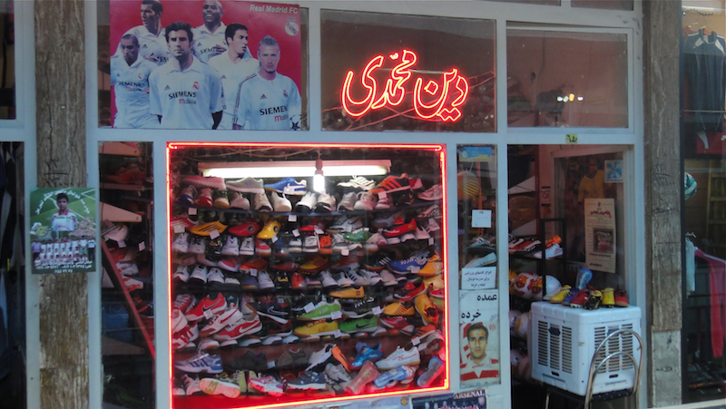 ...och en sportaffär där man inte så noga vet om varorna är äkta eller inte - Made in China är i alla fall säkert :roll: ...