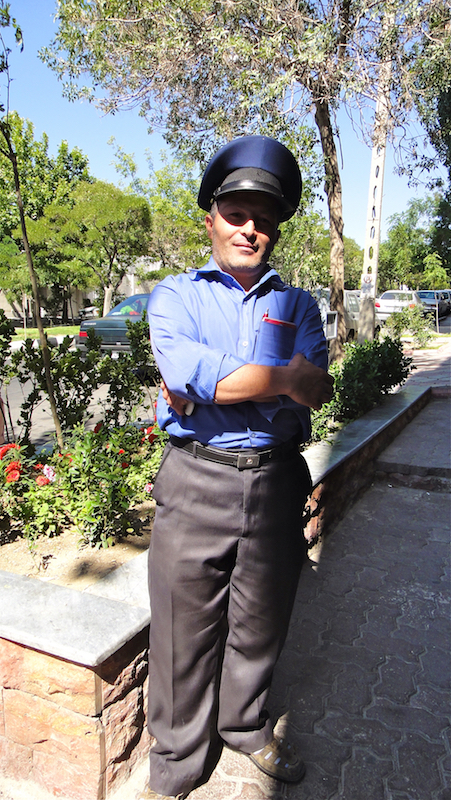 En civilklädd man tar hand om oss - chefen, som talar engelska. "All papers, please...". Vi sätter oss i nedgångna fåtöljer, chefen beställer te. Han som kontrollerar våra papper sitter framför en computer - och svär på farsi...