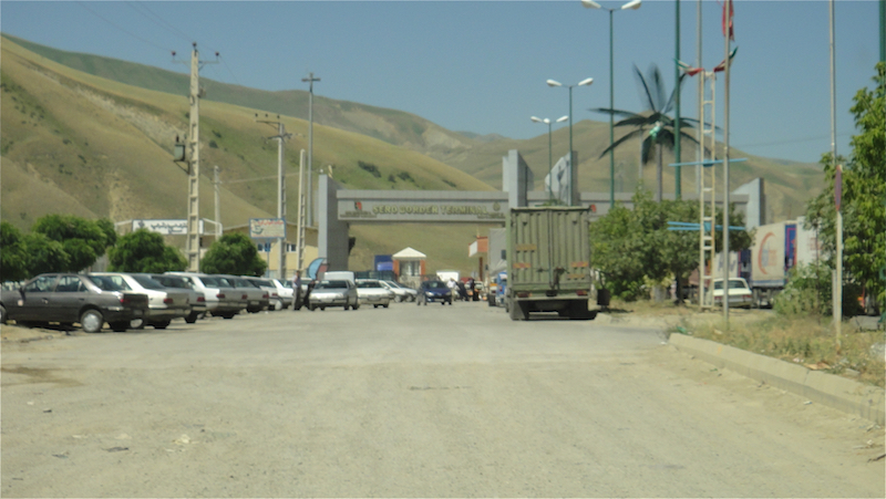 ...vi är mitt uppe i bergen, strax under 2.000 m. Ett par hus på var sin sida om gränsen, militär och annan uniformerad personal, lastbilar och deras chaufförer. Privatbilarna som står parkerade vid sidan om vägen tillhör tydligen personalen, vår är den enda i kön - vi vinkas fram, förbi de stora monstren, parkerar och stiger ur. Iransk militär för oss in i en stor byggnad med enkelt snickrade kontor, det är varmt...och på något vis...spännande...
