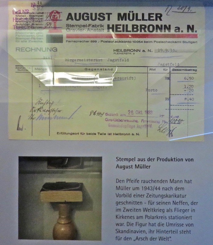 Stämpelfabrikören dog f.ö. den 4 december 1944. Dagen då 282 Lancaster-bombare skickade sin last över staden - 62% av Heilbronn förstördes, 6.500 människor dog i infernot...