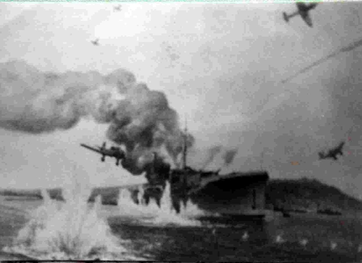 ''De långsamma Stukaplanen'' - avslöjades inte som försvarslösa - förrän just under Battle of Britain. Då deras förluster genom brittiskEtt alldeles lysande och komplett svar.Foylebank som ombyggd till ett välbeväpnat luftvärnsfartyg ändå inte kunde stå emot de långsamma Stukaplanen......