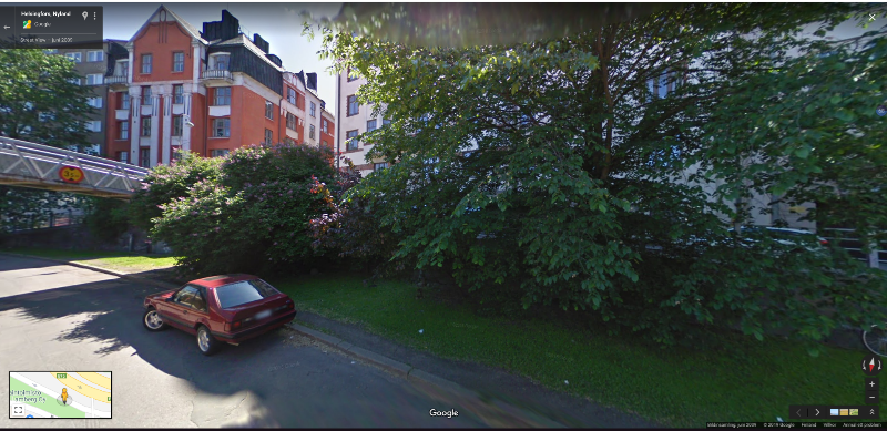 På Vilhelmsbergsgatan svänger räcket fel och på Bokarbetargatan skymmer träden utsikten. Här är bilder från platsen dit bråtet kippades.