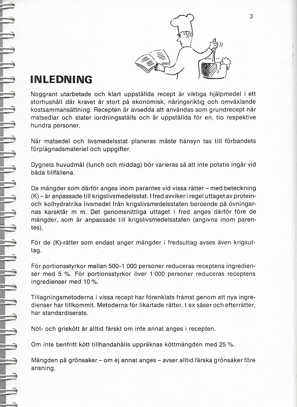 I ämnet ska jag be att få rekommendera boken ”Fredskockarna - i grytorna för freden”. Handlar om maten och livet i utlandstjänst. Många bra recept som vittnar om god fantasi hos kockar med en begränsad verktygslåda.