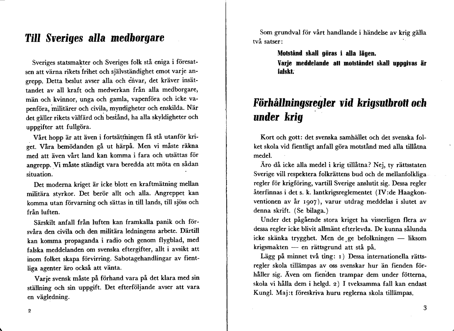 I broschyren Om kriget kommer fanns denna passus med på flera ställen. Liksom fomuleringen