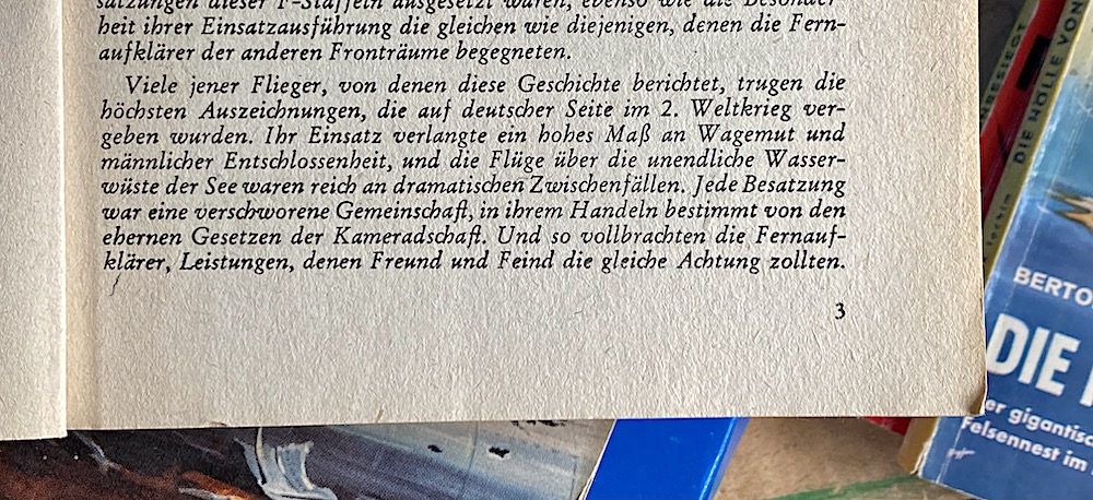 Därför hittar vi i dessa "Fliegergeschichten" ofta förord, som i sak kan ha sin riktighet, men sällan dyker upp - så - i dagens krigslitteratur: