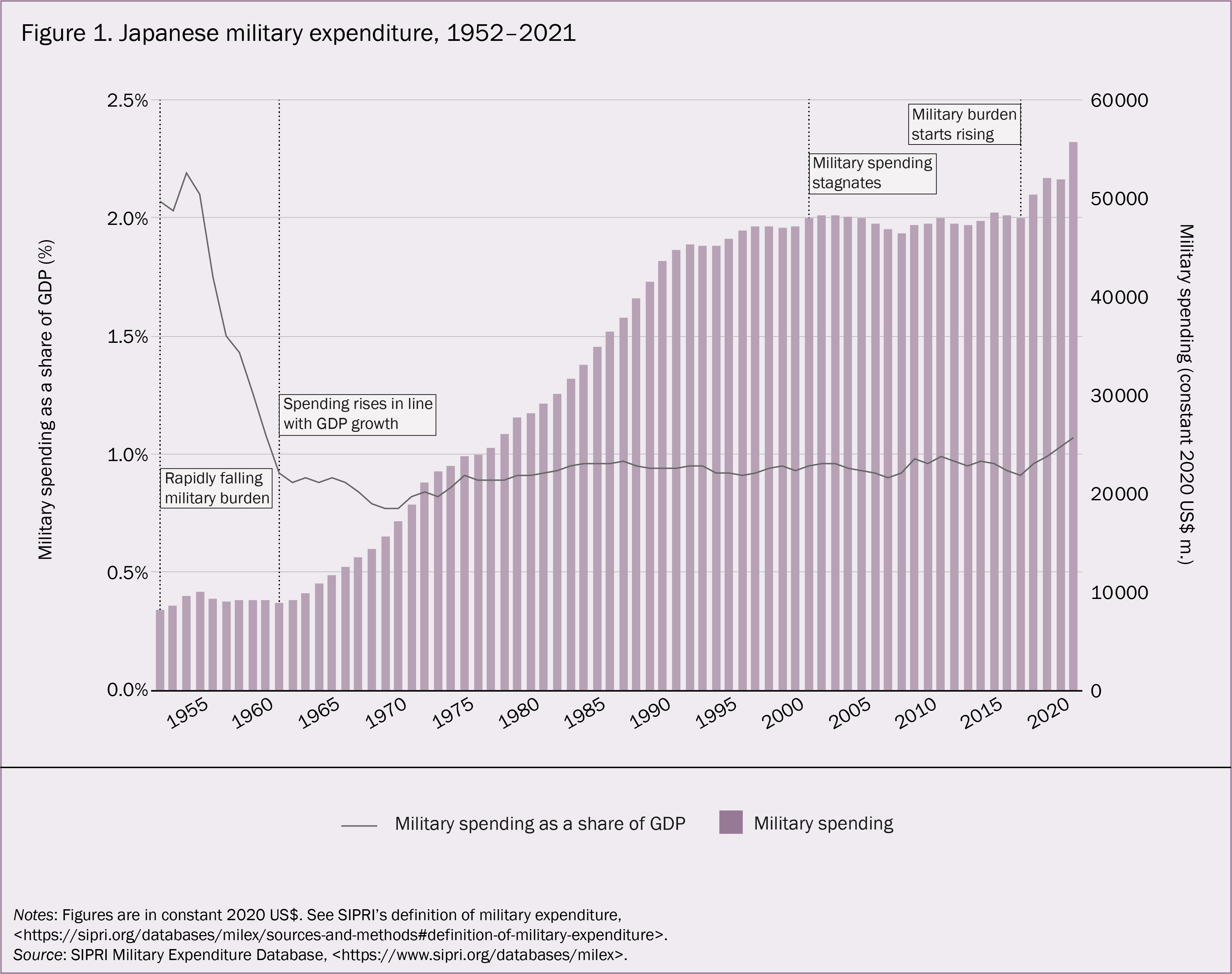 Kommentar: Intressant att Japan hade relativt höga militärutgifter under Koreakriget, även om de kanske i relation till BNP var låga?