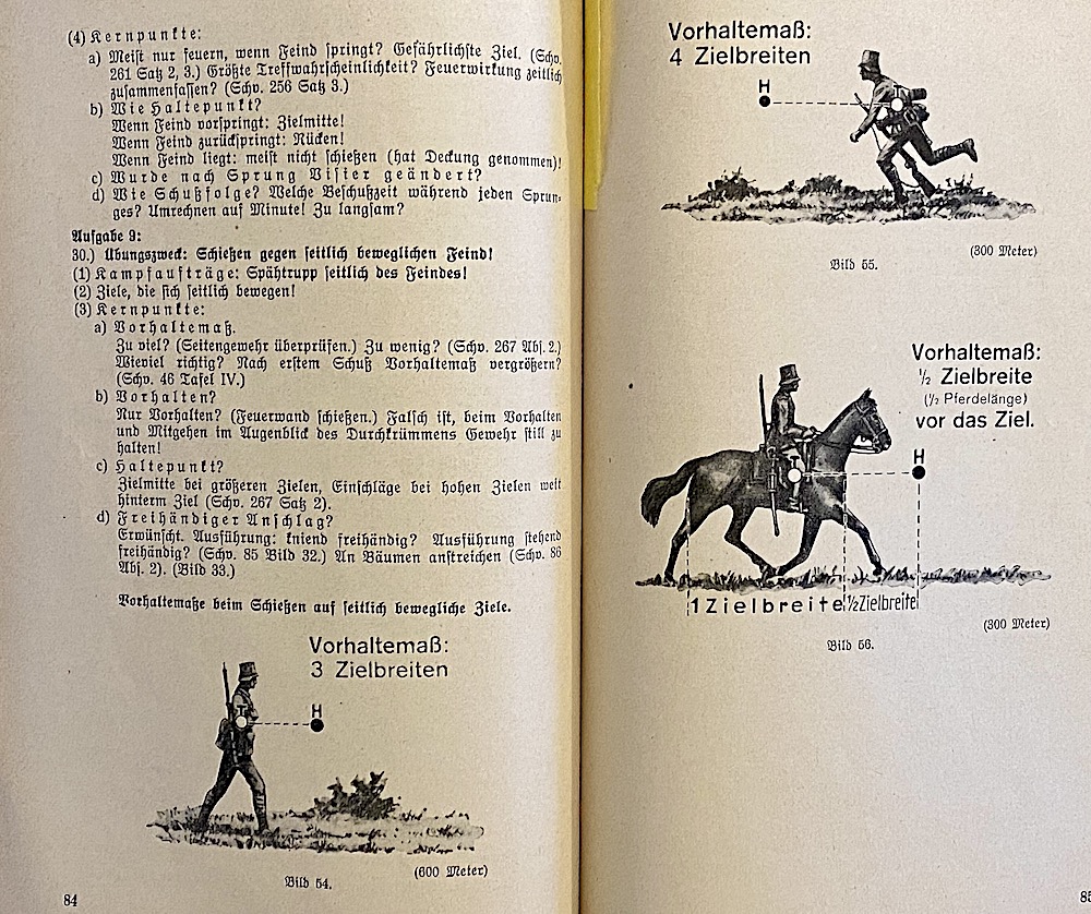 Apropå uniformer och då särskilt huvudbonader. Hittade den här tyska instruktionsboken, att skjuta i krig, frikostigt illustrerad. Första upplagan kom 1939, men den jag har kom ett år senare, med, som det står, de samlade erfarenheterna från det polska fälttåget...