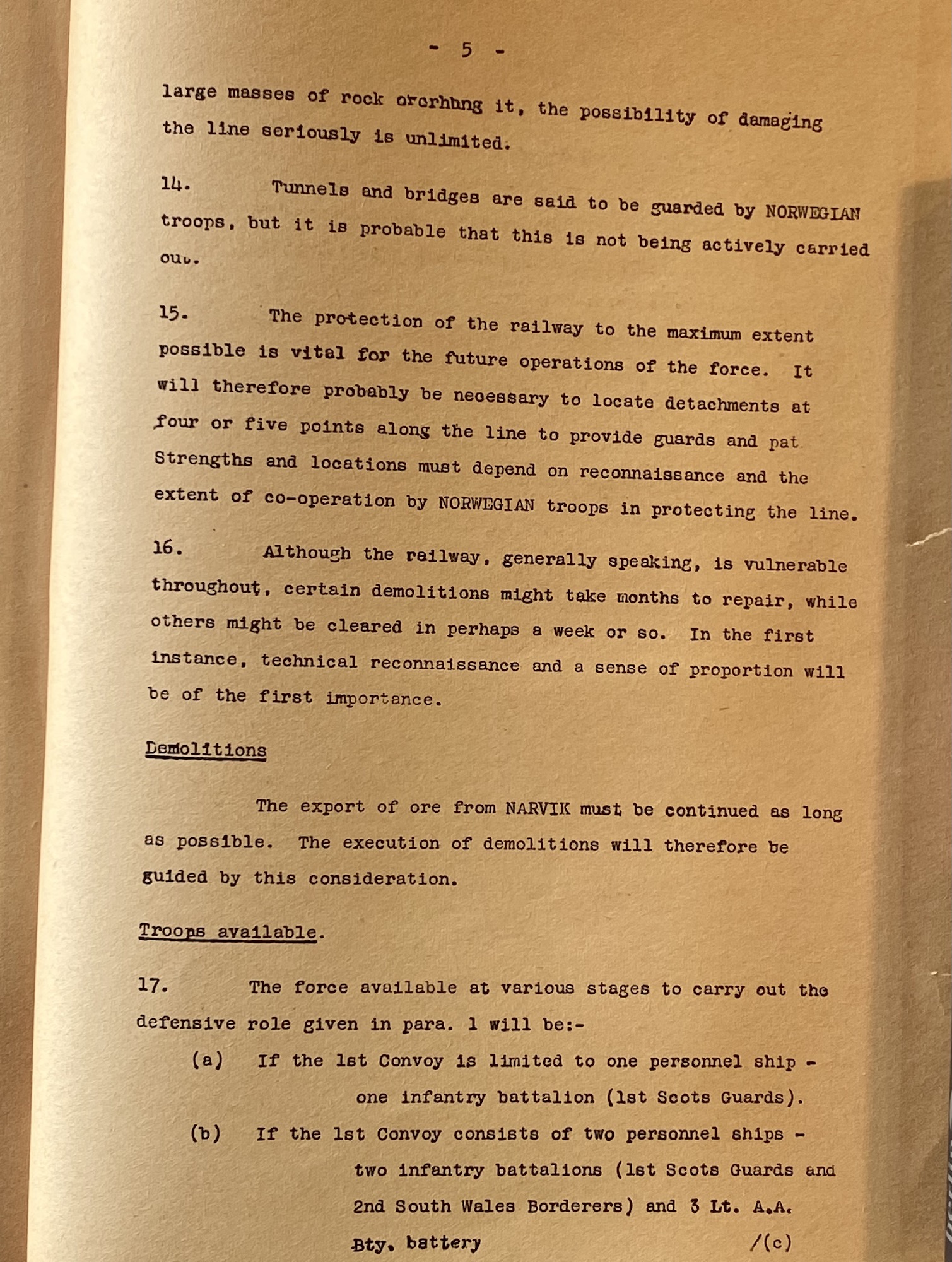 Intressant är hur de funderar på eventuell sovjetisk inblandning som hjälp för sina allierade tyskarna. Daterat den sjätte april 1940. Tre dagar innan, tyskarna hann före, men planen kan förklara den snabba allierade förmågan att agera.
