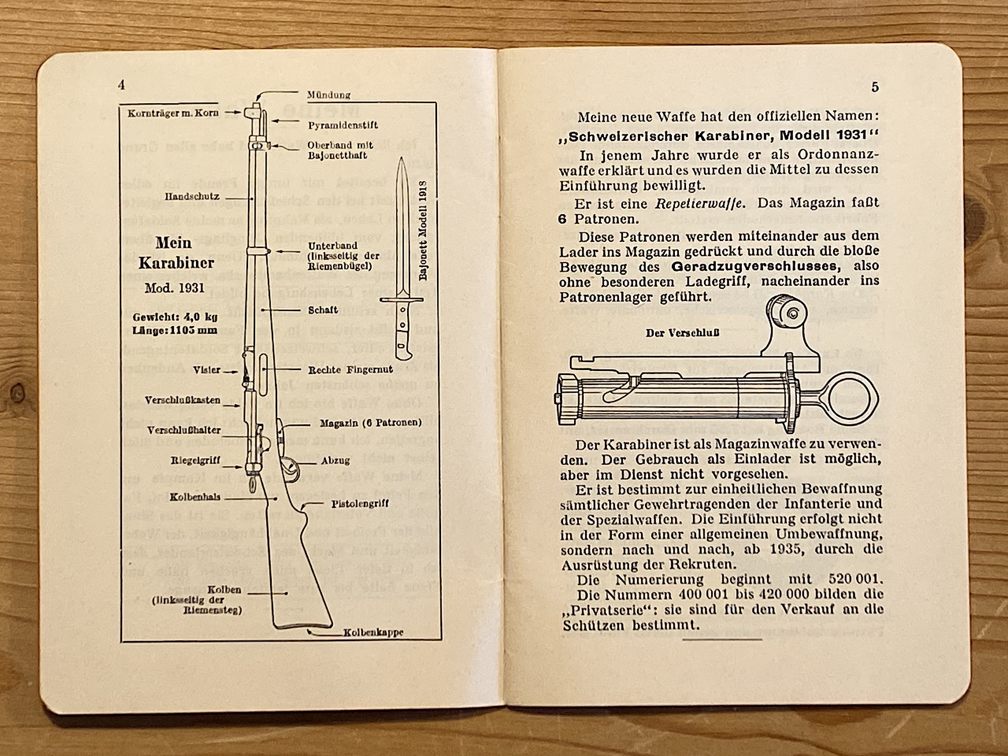 Som det här häftet som varje schweizisk soldat fick 1939: "Meine neue Waffe". Nåja, helt nytt var det inte, Karabiner Modell 1931! Soldaten fick en kort beskrivning, och lite råd OM nu kriget skulle komma: "Mitt vapens riktiga användning garanterar mig en seger i eldkampen." Jajamen...