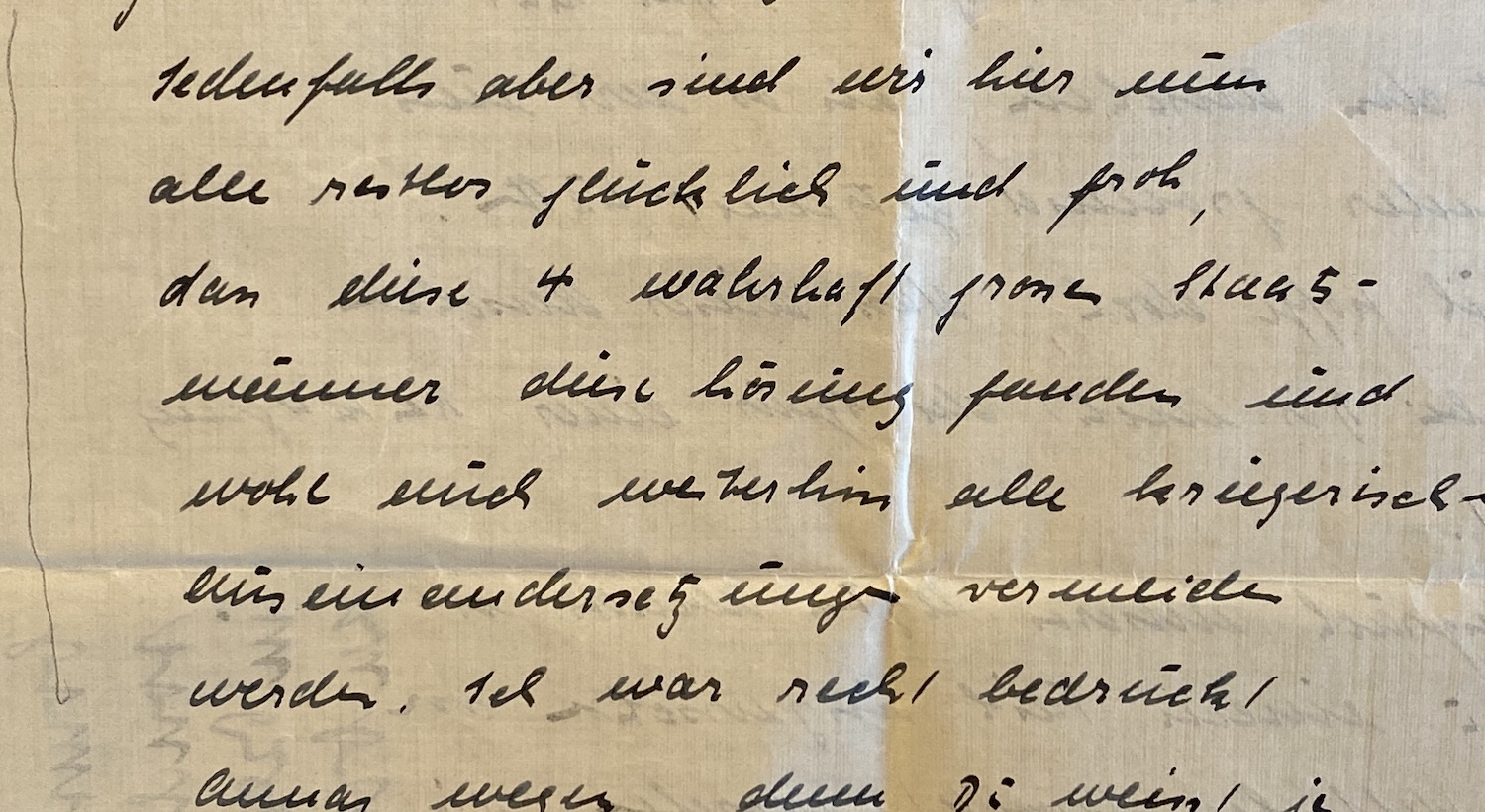 "Att Du så direkt skriver om min fars tillstånd är mycket bra; det är svårt att göra sig en bild genom ett brev, och Ditt brev är det första - bortsett från min mors post - som beskriver min fars tillstånd. Vi vet alla vad denna "Krankheit" (sjukdom) betyder: det finns ingen livsvilja mer. Allt, som han under sextio år byggt upp har tagits ifrån honom och förstörts."