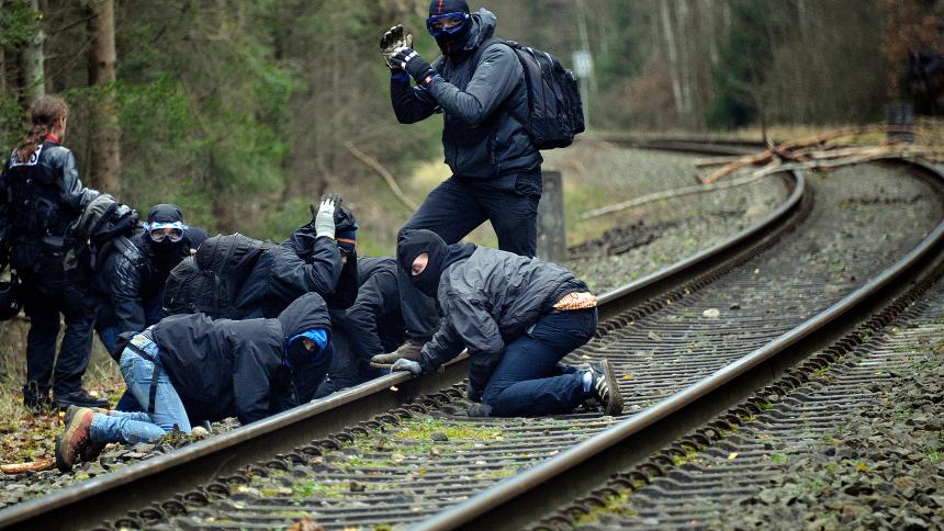 Något som de här grabbarna och jäntorna placerat på, vid, under skenorna...?
