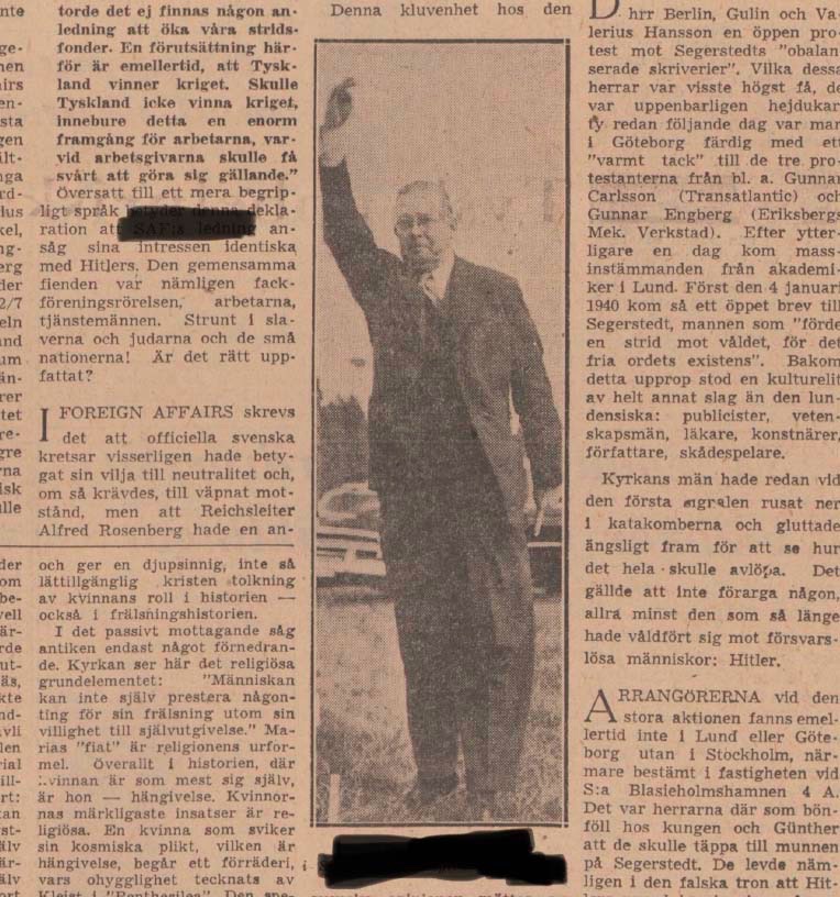 Nej, detta var nog för smalt. SAF-ordföranden Bertil Kugelberg spelade varpa ihop med LO-ordföranden och fångas på ett foto tillsammans med dem med armen höjd efter ett kast. Thor Brunius skriver långt senare en svidande kritiskt artikel i Aftonbladet där SAF beskrivs som att under kriget ha gjort gemensam sak med Hitlertyskland. Artikeln illustreras med varpa-bilden, men starkt beskuren och utan förklaring till posen, så det vid en snabb anblick ser ut som om Kugelberg gör Hitler-hälsningen. Expressen hittar den obeskurna bilden och publicerar en artikel som är starkt kritisk mot konkurrentens bildpubliceringsprinciper (eller brist på principer, snarare!)