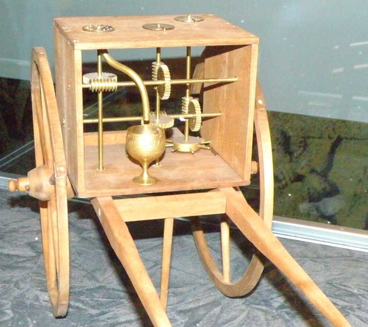 Hursomhelst är jag ganska säker på att prylen användes av romarna, när de placerade ut milstenar (vilket motsäger att det skulle varit archimedes, då han dödades av dem). Urverket släppte ner en kula i skålen efter en romersk mil. Och jag har för mig att de har en differentialväxel som gör att det går smidigt i kurvor, samt att man tills nyligen inte trodde maskinen någonsin fungerade, förrän man insåg att man hade använt fel sorts kugghjul när man försökte rekonstruera den?