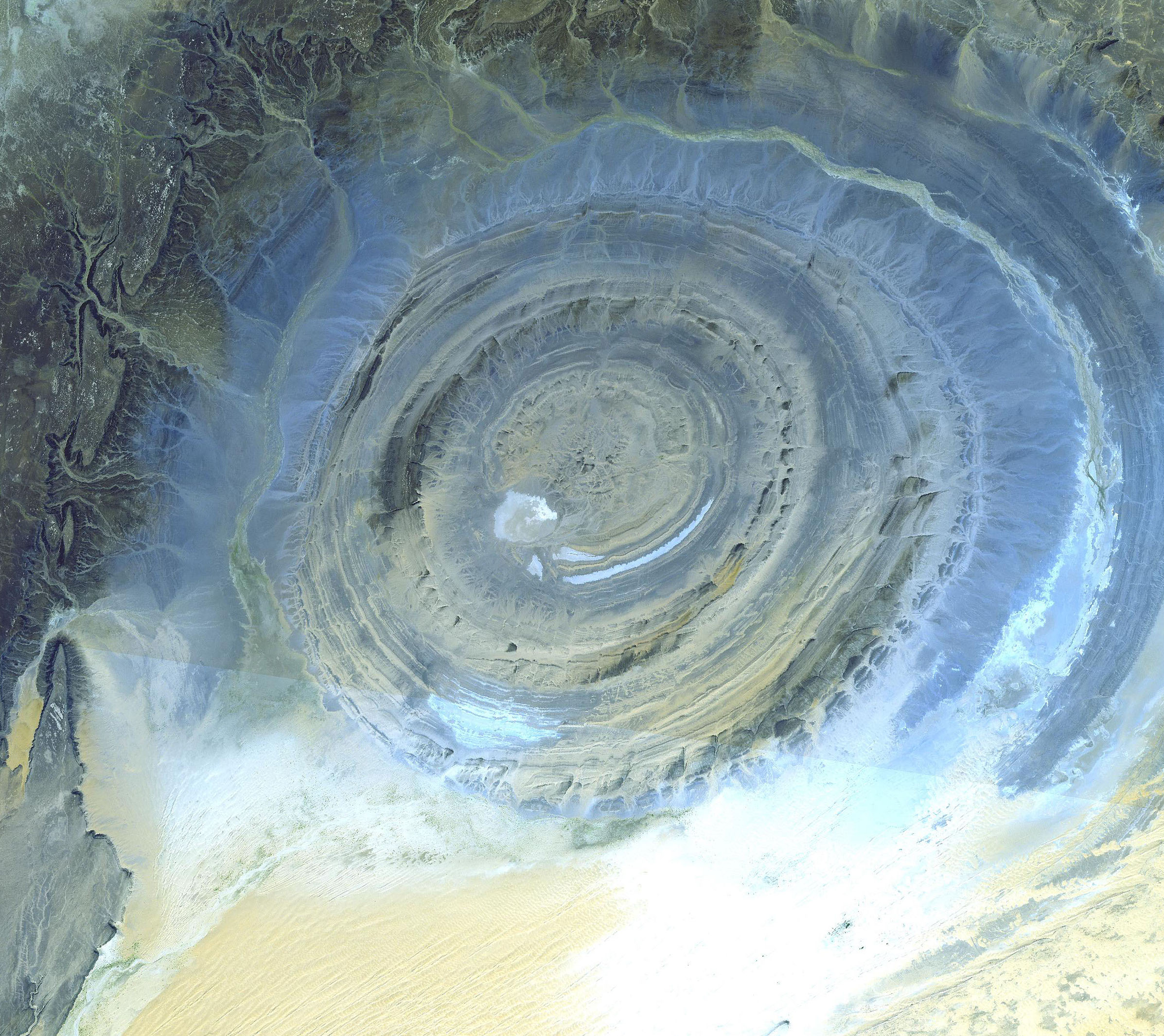 Richatstrukturen i Mauritanien! https://en.wikipedia.org/wiki/Richat_Structure