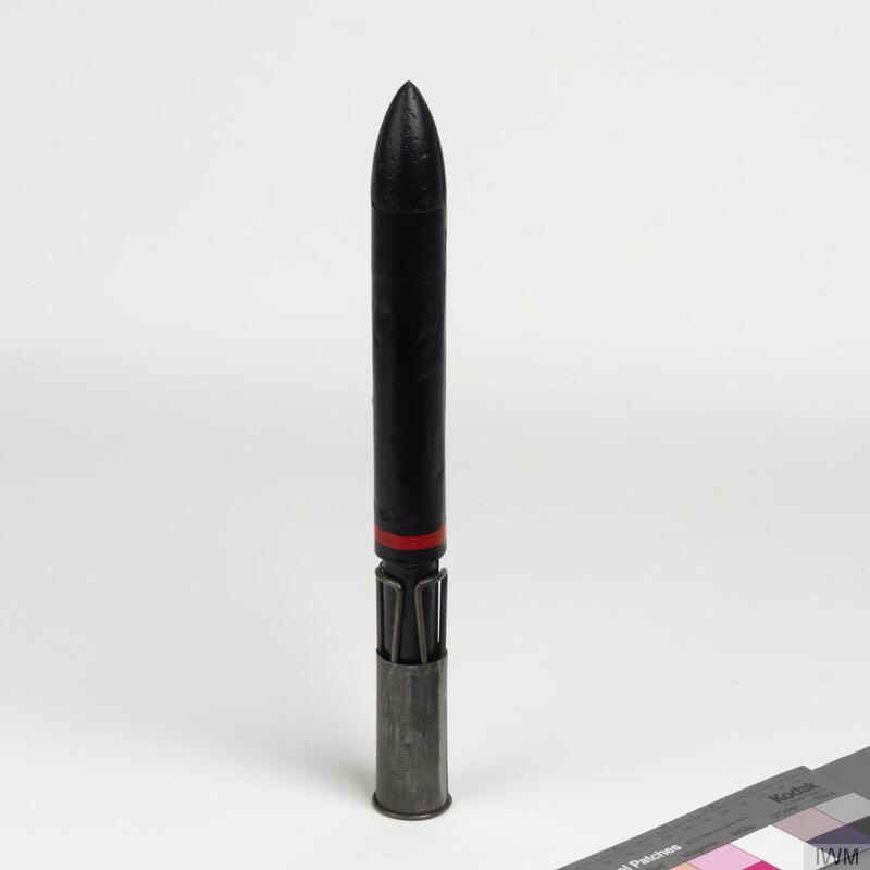 Verkar som jag får lätta på förlåten - det är ett brittisk anti-zeppelinar-vapen från VK1, en sk "Ranken Dart". Britterna hade inledningsvis svårt att angripa de voluminösa bestarna på ett verkningsfullt sätt. Visserligen var de fyllda med vätgas och en kulsprutesalva gjorde en massa hål i gassäckarna men eftersom en zeppelinare hade många gassäckar var det svårt att punktera tillräckligt många tillräckligt mycket för att nedlägga odjuret. Dessutom trodde man att zeppelinarna hade en skyddslager med inert gas vilket gjorde det än svårare att få fjutt på't. Man försökte därför bekämpa de långsamma och stora målen genom att bomba dem ovanifrån (!). Det var naturligtvis inte så enkelt att nattetid komma i överläge på en zeppelinare och träffa den med en bomb.