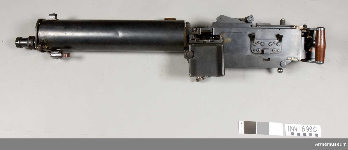Kulspruta m/1914 in 6.5×55mm.[15] About 1300 were produced by the state small arms factory between 1914 and 1930.
